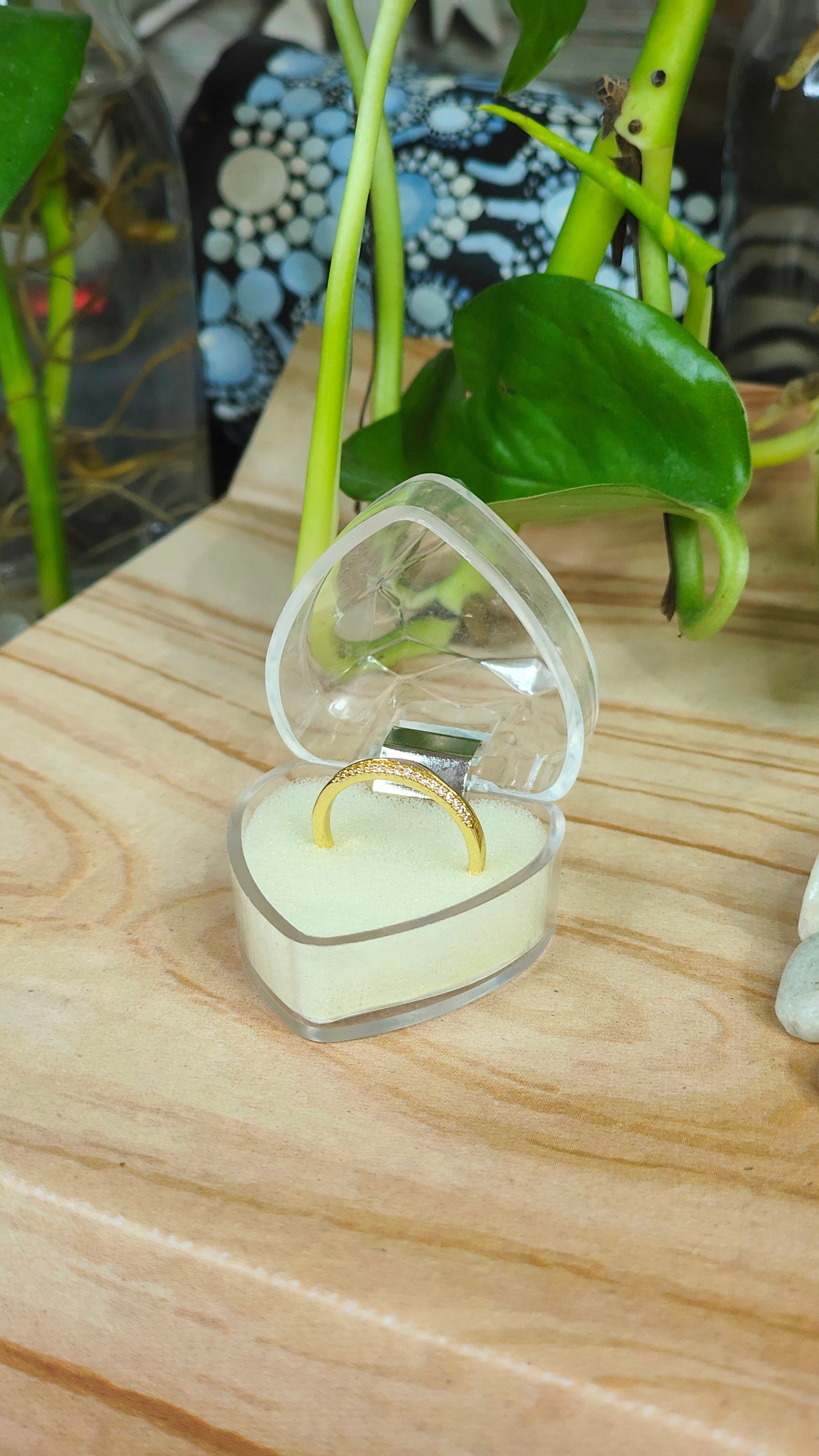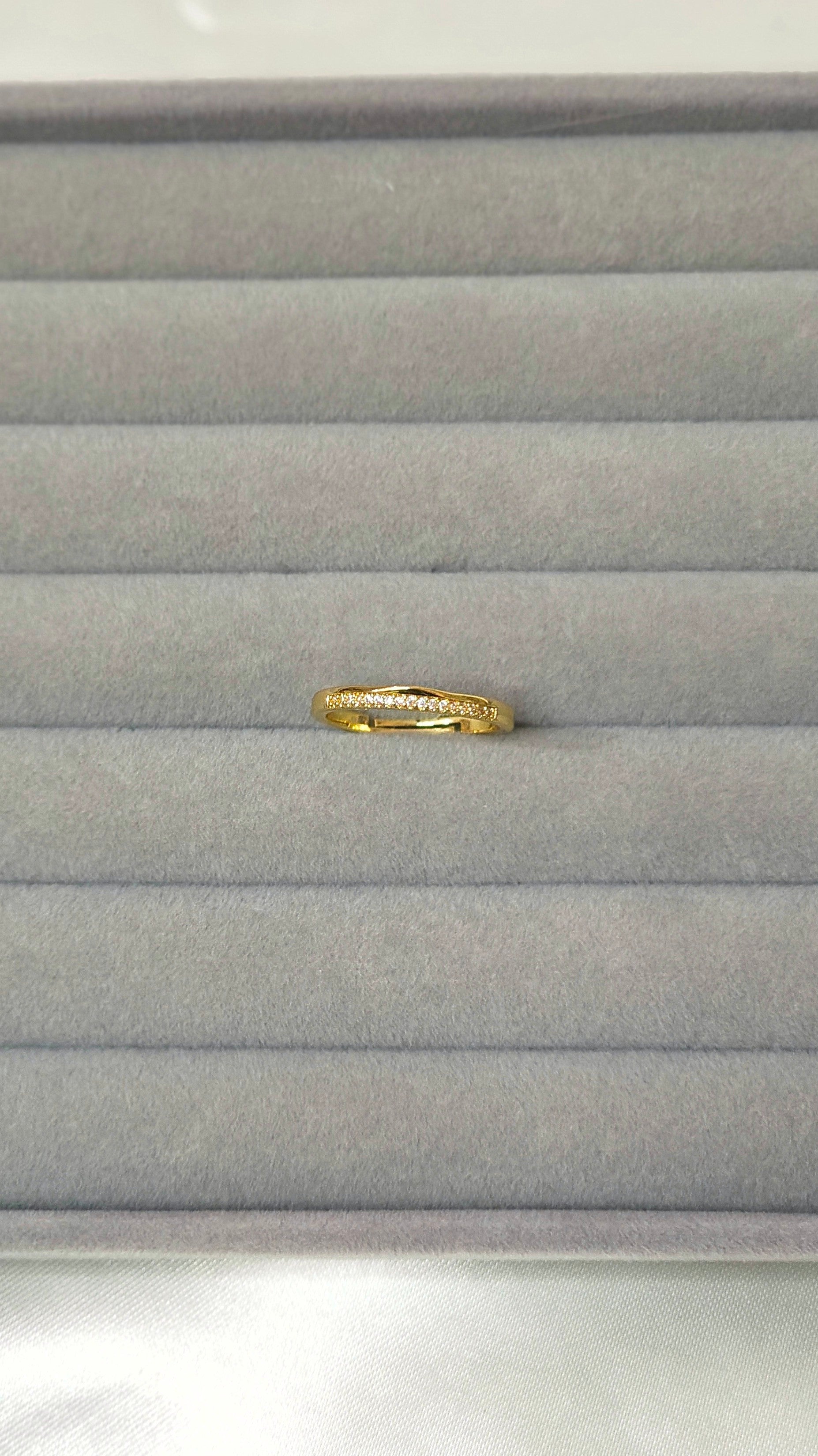 Crafted in gold-plated (anti-tarnish) metal, this elegant slim band features a row of sparkling cubic zirconia for a modern geometric motif. Its radiant gold and delicate style make it ideal for casual wear or stacking with party outfits.