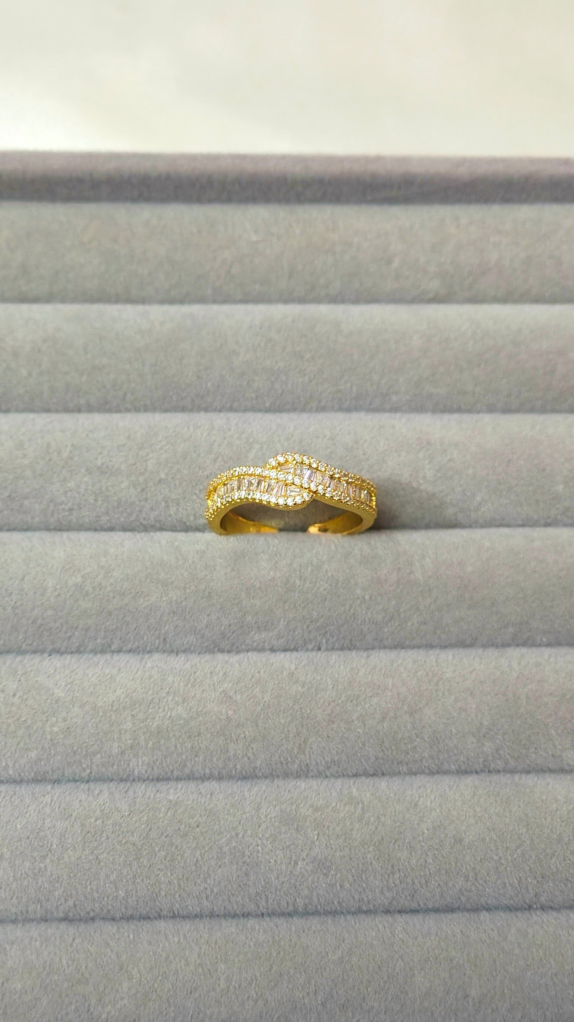 18K Gold-Plated Wave CZ Statement Ring