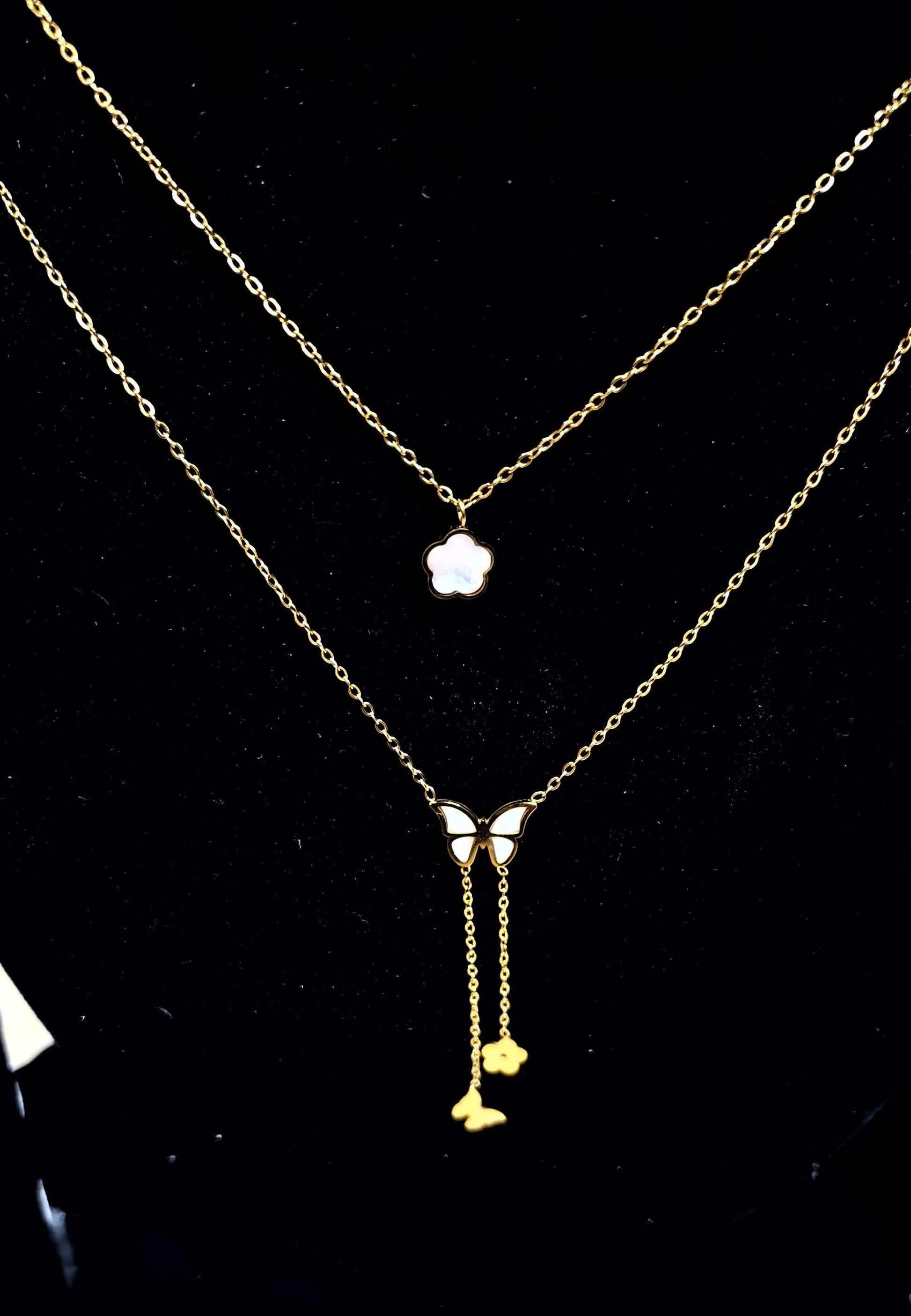 Anti-Tarnish Butterfly and Clover Layered Necklace