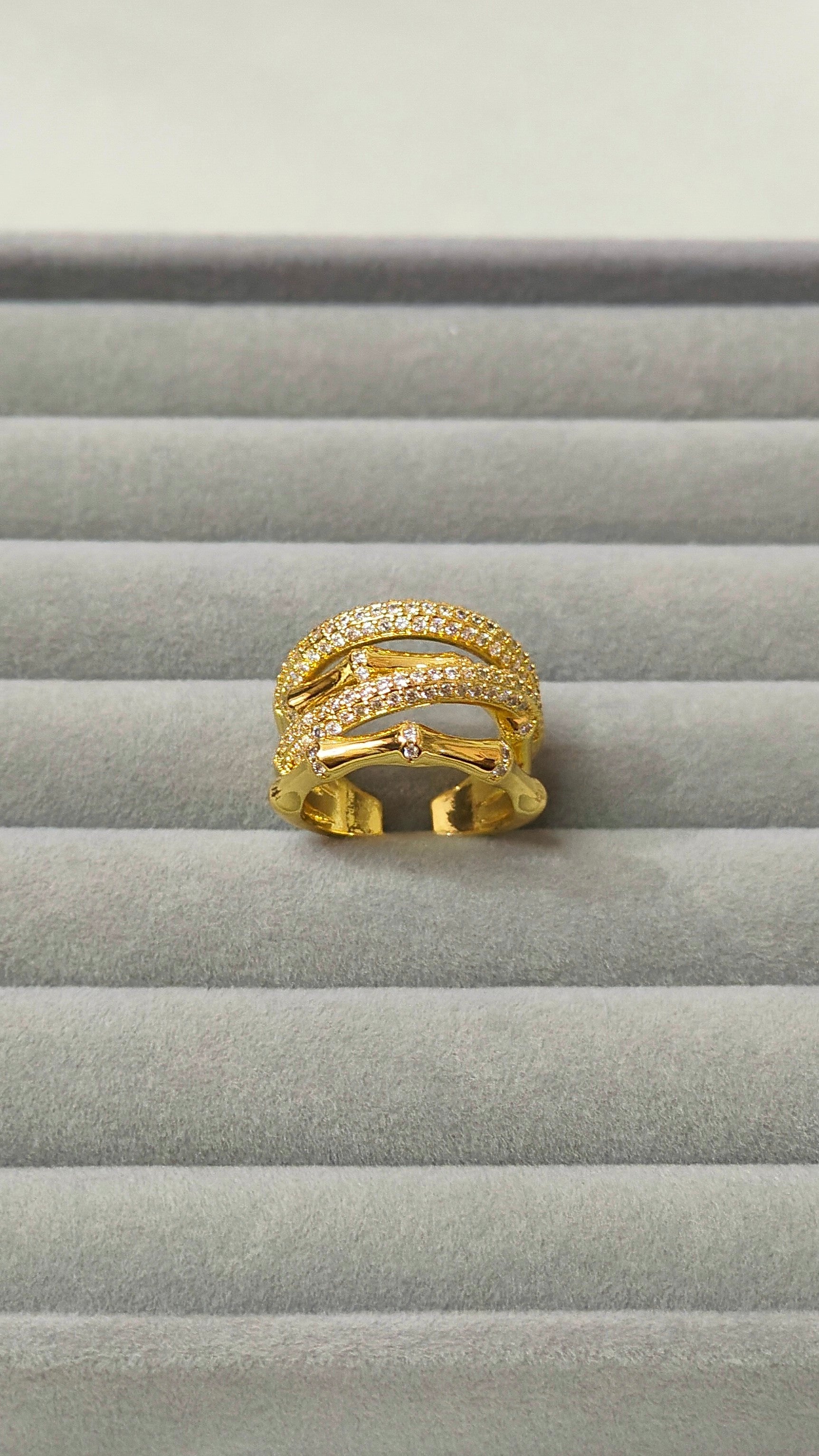 Anti-Tarnish 18k Gold plated Bamboo Statement Ring