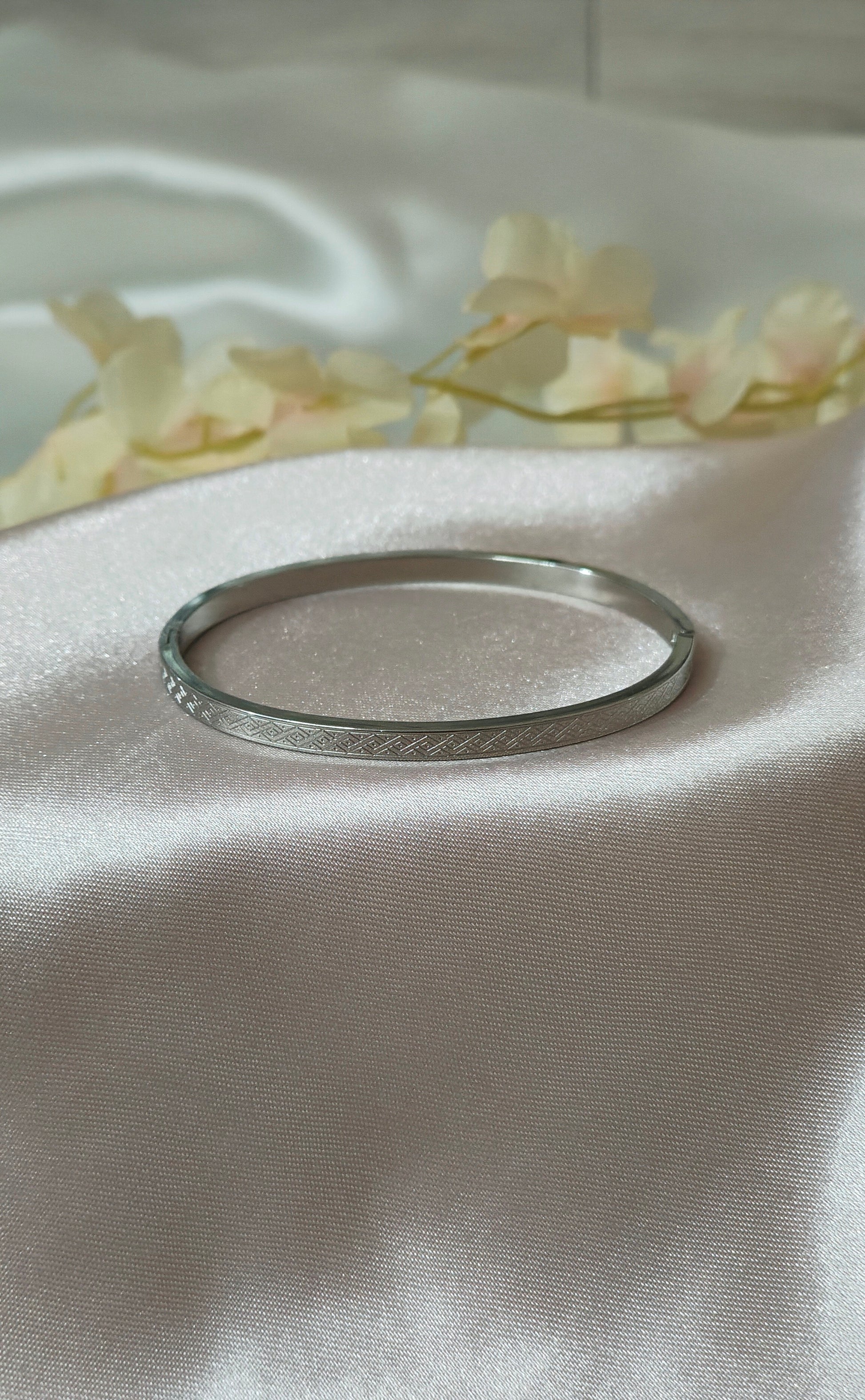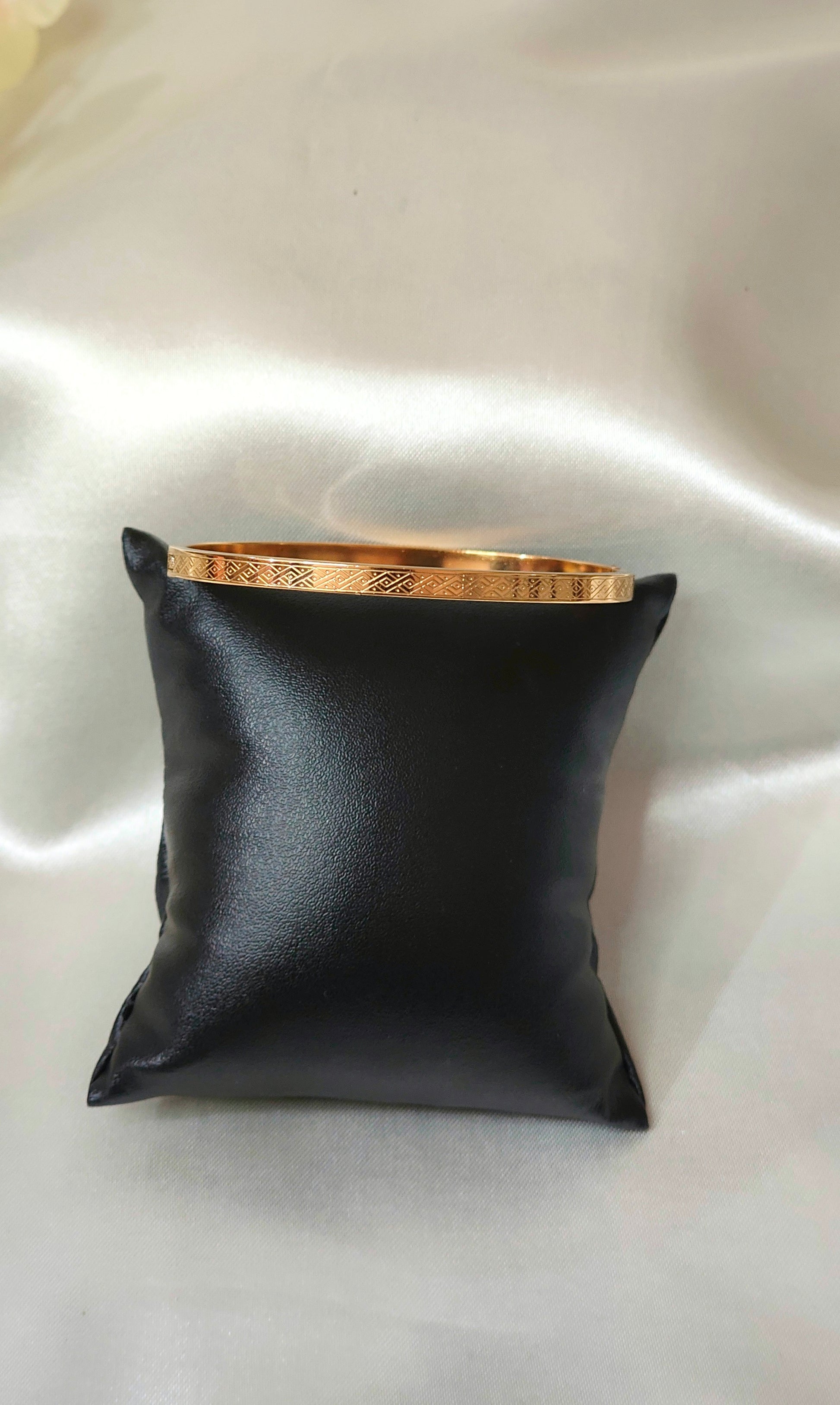 Elegant gold-plated (anti-tarnish) bangle featuring classic geometric motifs in gold, silver, and rose gold tones. The smooth finish and delicate engravings make these bangles perfect for both casual and party wear, adding a timeless touch to any look.