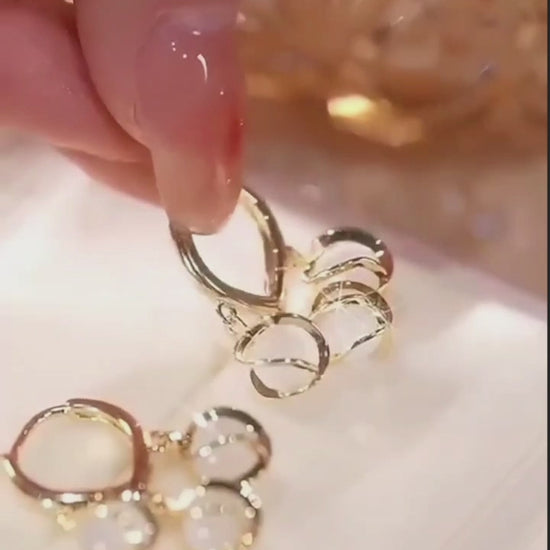 These elegant hoop earrings feature a triple drop design with white crystal beads set in a gold plated geometric frame, all finished with an gold plated coating. The radiant gold and milky white style make them perfect for party or formal occasions. Waterproof, skin friendly, and eco friendly for lasting comfort and shine.
