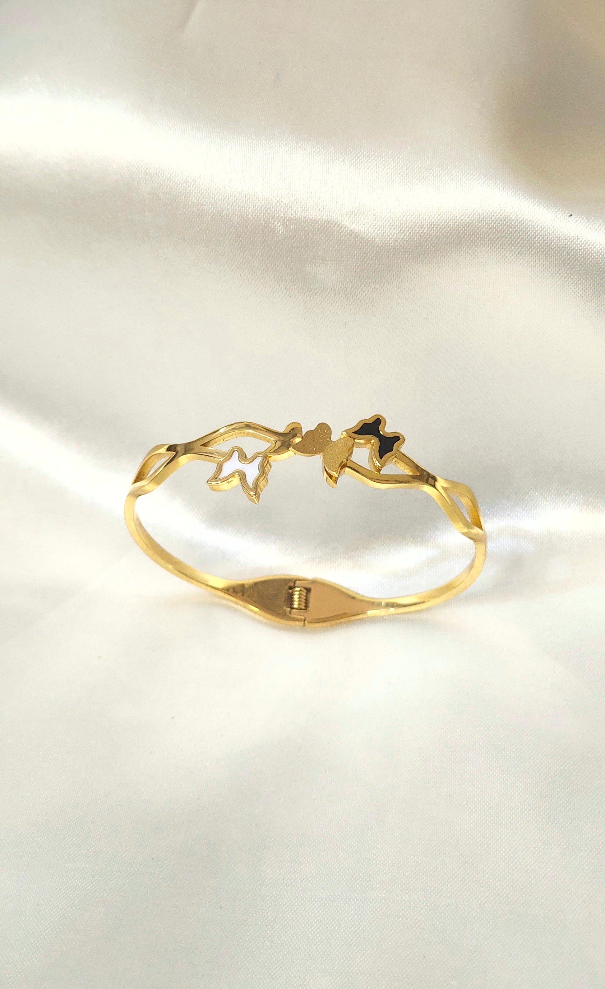 Elegant bracelet crafted from gold-plated (anti-tarnish) material featuring a delicate butterfly motif. The eye-catching gold design makes it perfect for daily casual wear or adding a chic touch to party outfits. Lightweight, trendy, and ideal for gifting or self-style.
