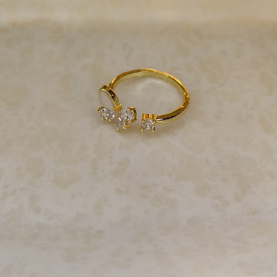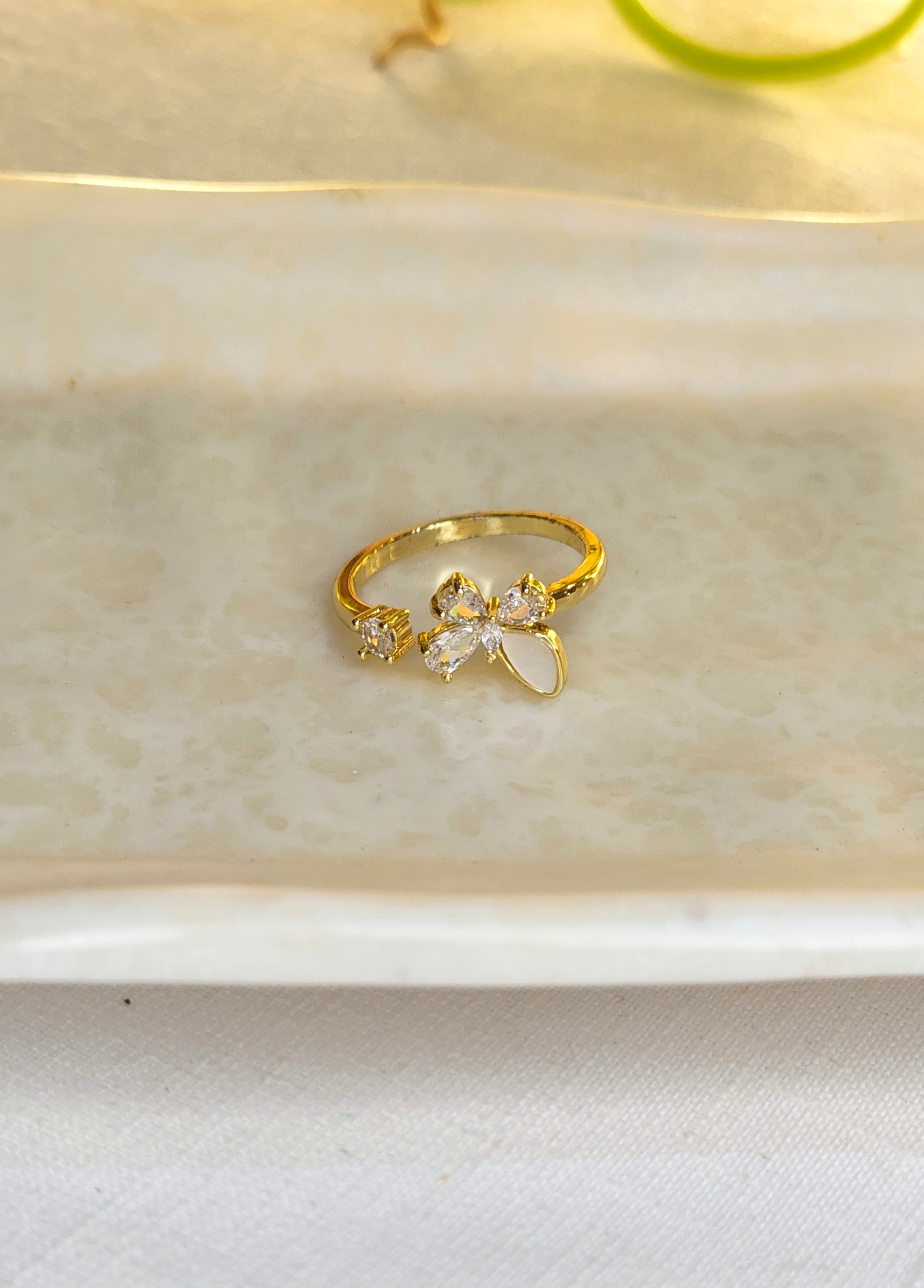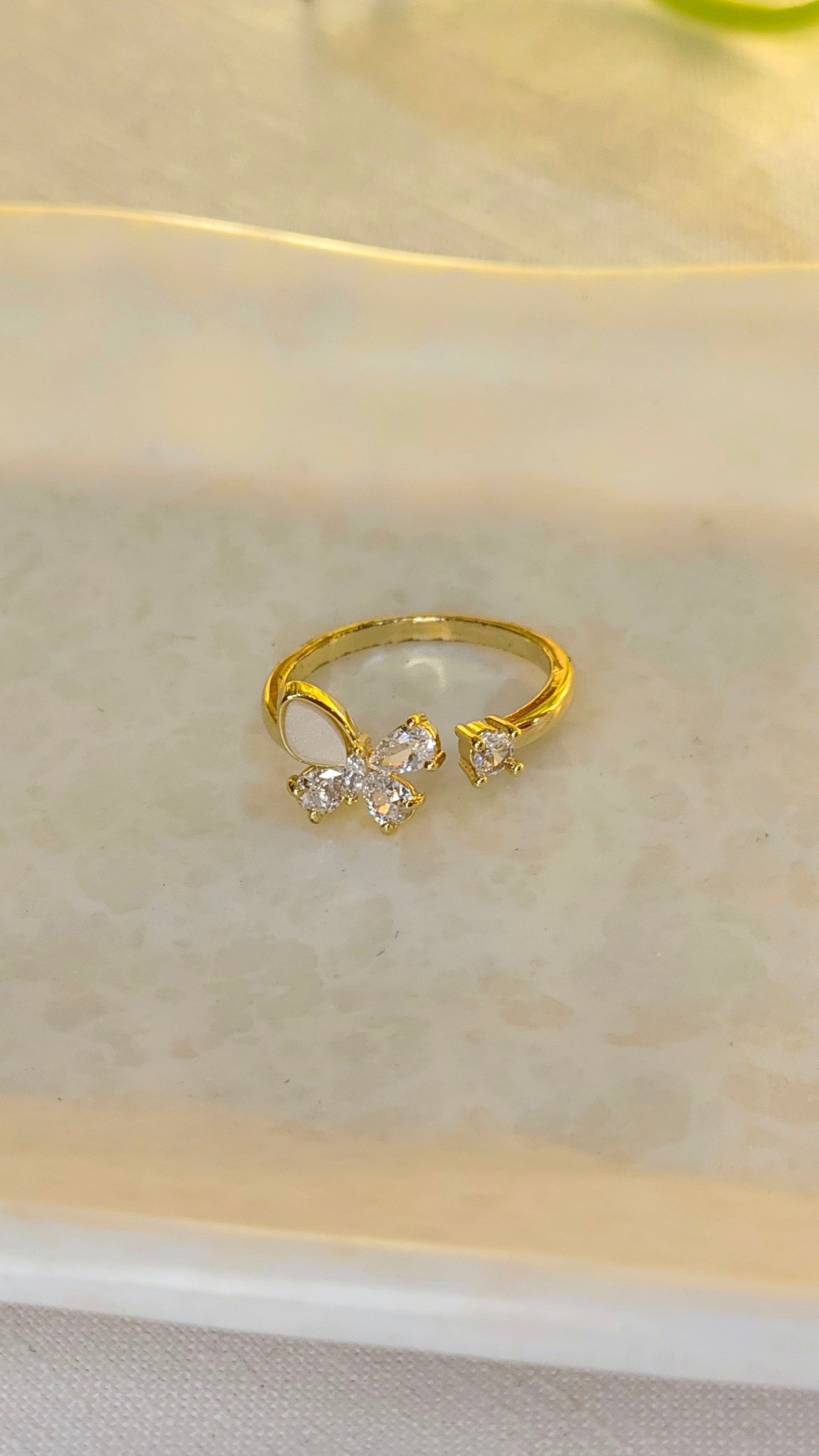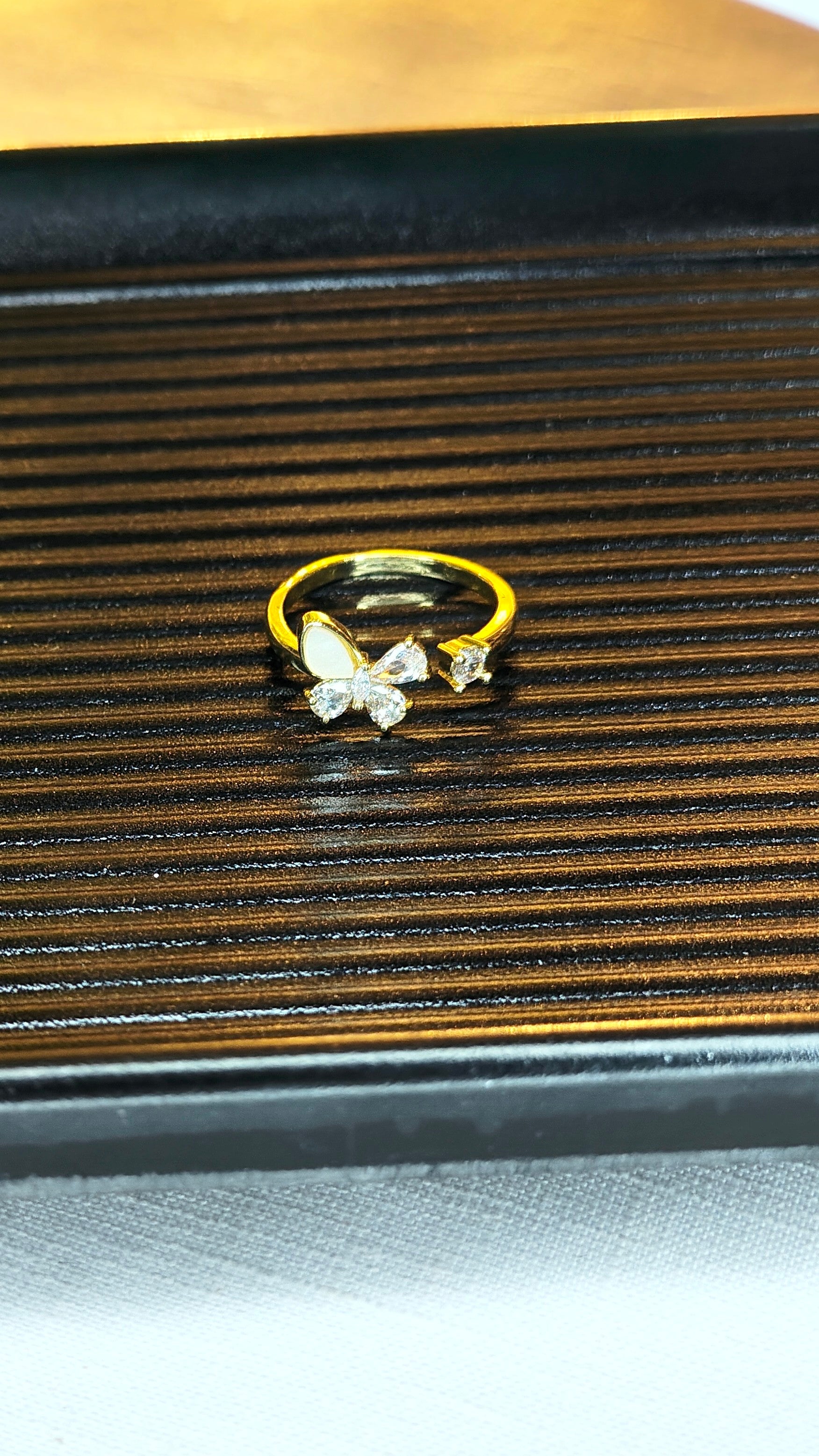 Elegant butterfly-design ring with anti-tarnish coating for a lasting shine. Features sparkling stones in a gold finish, perfect for casual and party wear. Confirmed material: anti-tarnish coated base, likely skin-friendly and waterproof.