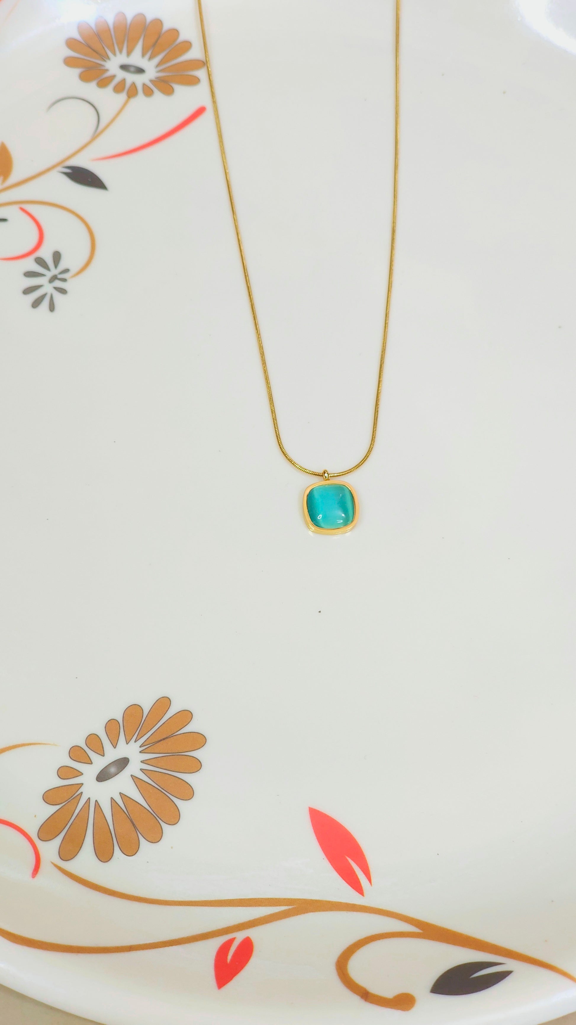 Gold Plated Anti-Tarnish Square Stone Pendant Necklace