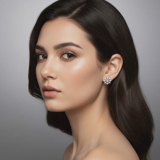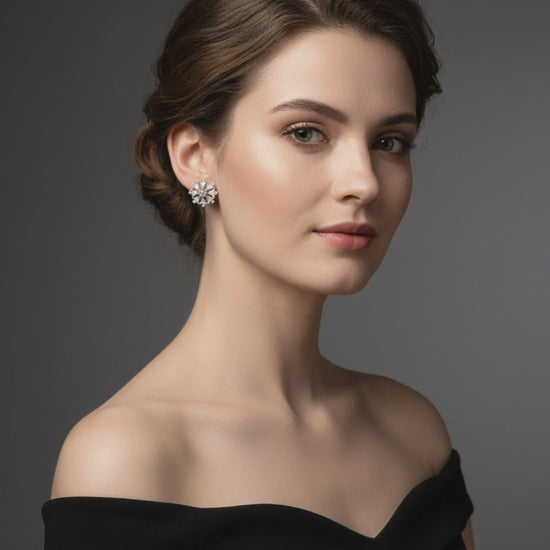 Women’s crystal flower stud earrings for parties